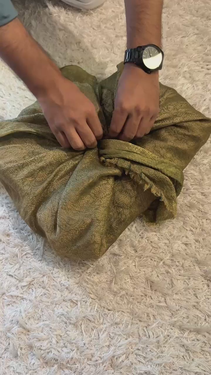 Stunning brocade body, contrast golden golden pallu.